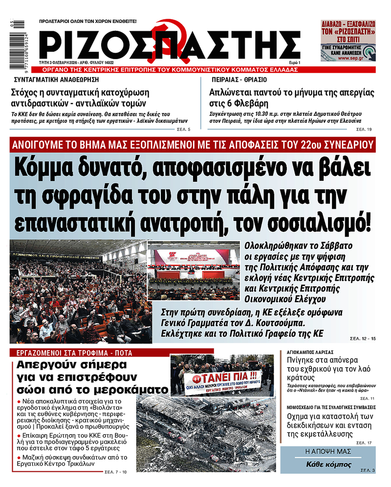 Αν κάτι επιβεβαιώνεται ξανά είναι ότι για να κερδίσει έστω και μια ανάσα ο λαός, πρέπει να χάσει το κεφάλαιο. Γι' αυτό απαιτείται σύγκρουση με όλη τη γραμμή του και με κάθε εκδοχή της αντιλαϊκής πολιτικής, όπως κι αν εκφράζεται: Από την ένταση της εκμετάλλευσης στους χώρους δουλειάς και την αντεργατική νομοθεσία όλων των κυβερνήσεων, μέχρι την Υγεία και τη στέγη - εμπόρευμα, που απομυζούν το εργατικό - λαϊκό εισόδημα.