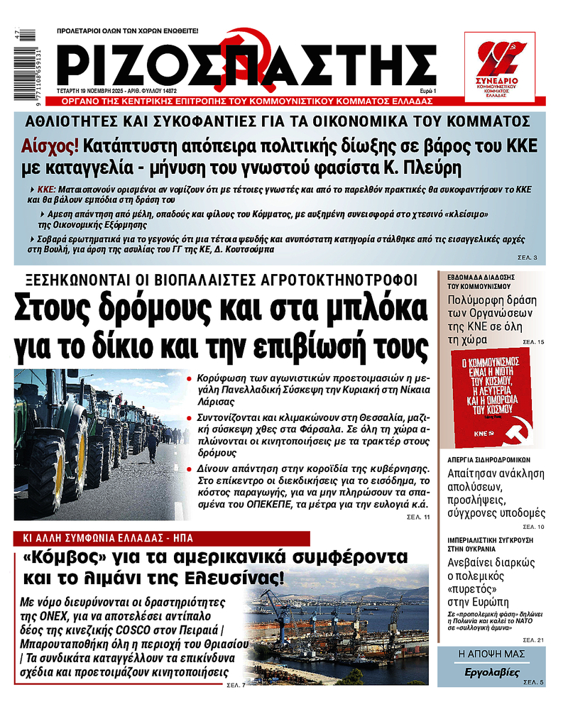 Τετάρτη 19 Νοέμβρη 2025 - αριθ. φύλλου: 14872