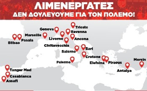 Μήνυμα διεθνιστικής αλληλεγγύης η συμμετοχή στη μέρα δράσης των λιμενεργατών σε 6 χώρες και 20 λιμάνια της Μεσογείου με σύνθημα: Δεν δουλεύουμε για τον πόλεμο!