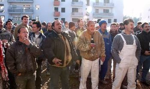 Συσπειρωμένοι στο Συνδικάτο Οικοδόμων Ελληνες και αλλοδαποί εργάτες έκαναν χτες δυναμική κινητοποίηση μέσα στο εργοτάξιο της β' εργολαβίας, αξιώνοντας να σταματήσουν οι διακρίσεις και η εργοδοτική αυθαιρεσία