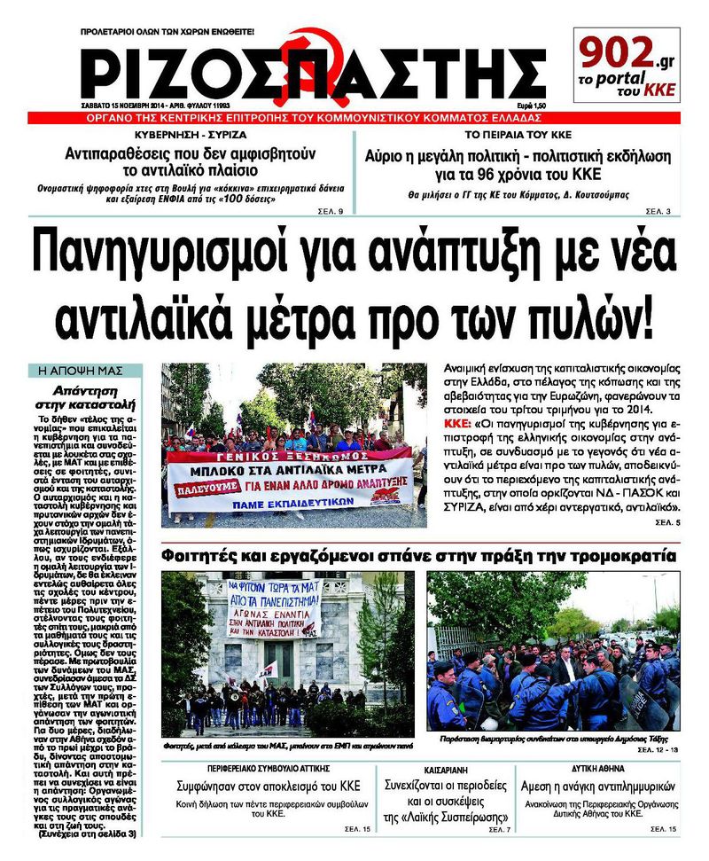ΚΚΕ: «Οι πανηγυρισμοί της κυβέρνησης για επιστροφή της ελληνικής οικονομίας στην ανάπτυξη, σε συνδυασμό με το γεγονός ότι νέα αντιλαϊκά μέτρα είναι προ των πυλών, αποδεικνύουν ότι το περιεχόμενο της καπιταλιστικής ανάπτυξης, στην οποία ορκίζονται ΝΔ - ΠΑΣΟΚ και ΣΥΡΙΖΑ, είναι από χέρι αντεργατικό, αντιλαϊκό».