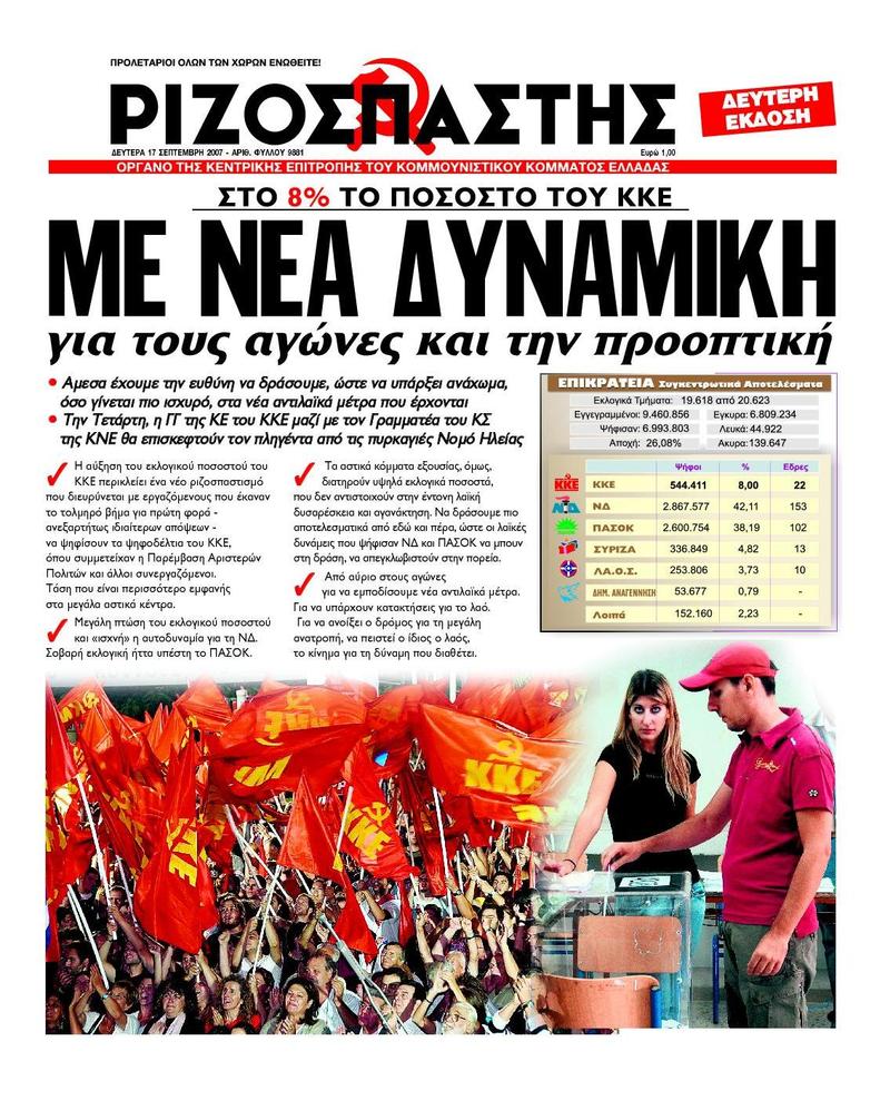 Τα αστικά κόμματα εξουσίας, όμως, διατηρούν υψηλά εκλογικά ποσοστά, που δεν αντιστοιχούν στην έντονη λαϊκή δυσαρέσκεια και αγανάκτηση. Να δράσουμε πιο αποτελεσματικά από εδώ και πέρα, ώστε οι λαϊκές δυνάμεις που ψήφισαν ΝΔ και ΠΑΣΟΚ να μπουν στη δράση, να απεγκλωβιστούν στην πορεία.