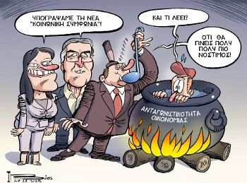 Πώς αντέδρασαν τα άλλα κόμματα στη συμφωνία κυβέρνησης - εργοδοτών - εργατοπατέρων; Ο Ανδρουλάκης του ΠΑΣΟΚ εκτίμησε ότι «η ΝΔ κάνει ένα δειλό βήμα, αλλά είναι ημιτελές. Πρέπει να γίνουν πολλά ακόμα». Ο τομεάρχης Εργασίας του ΣΥΡΙΖΑ δήλωσε ότι «μετά τα αλλεπάλληλα ψέματα που έχουμε ακούσει σχετικά με το δήθεν "ειδυλλιακό" εργασιακό ελληνικό τοπίο, η υπουργός αποφάσισε να ψελλίσει επιτέλους κάτι για τις Συλλογικές Συμβάσεις και την αναγκαιότητα της στήριξης των συλλογικών διαπραγματεύσεων (...) Την ώρα που η Ευρώπη θέτει ως στόχο την κάλυψη κατά 80% των εργαζομένων από ΣΣΕ, η χώρα μας βρίσκεται μόνο στο 24%». Και ο Τεμπονέρας της Νέας Αριστεράς: «Αφού η κυβέρνηση της ΝΔ ανακάλυψε μετά από 7 χρόνια ότι η χώρα είναι ευρωπαϊκή εξαίρεση (...) λαμβάνει πρωτοβουλίες. Οι νέες ρυθμίσεις δεν θα ευθυγραμμίσουν τη χώρα με τις προβλέψεις της ΕΕ για ποσοστό κάλυψης εργαζομένων από ΣΣΕ σε ποσοστό 80%». Ποια είναι τα κοινά σημεία στις δηλώσεις τους; Οτι το ευρωπαϊκό πλαίσιο είναι ...φιλεργατικό, αλλά η κυβέρνηση αποκλίνει συστηματικά από αυτό. Και ότι η ΝΔ άργησε να καταλάβει τι πρέπει να γίνει, και τώρα που το κατάλαβε το κάνει αργά... Τόμπολα! Δεν είναι μόνο η συναίνεσή τους σε μια συμφωνία που στόχο έχει να χτυπήσει στην καρδιά της τη συλλογική οργάνωση και διεκδίκηση καλύτερων μισθών, αλλά και η πρεμούρα τους να αποθεώσουν την «κοινωνική συναίνεση», που τους απασχολεί όλους σε καιρούς πολεμικής προετοιμασίας και αβεβαιότητας στο πολιτικό σύστημα.