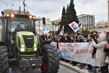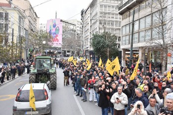 Σύνταγμα: Τα τρακτέρ προσεγγίζουν την πλατεία. Πίσω τους ξεχύνεται σαν ανθρώπινο ποτάμι το πλήθος των αγωνιζόμενων αγροτών, κτηνοτρόφων και μελισσοκόμων, παραταγμένοι στα μπλοκ των Αγροτικών Συλλόγων και Ομοσπονδιών, με τις σημαίες και τα πανό τους. Μαζί τους γυναίκες και παιδιά, εργαζόμενοι, άνθρωποι κάθε ηλικίας, που στάθηκαν δίπλα τους στις 55 μέρες στα μπλόκα και τώρα διαδηλώνουν μαζί τους στους δρόμους της Αθήνας.