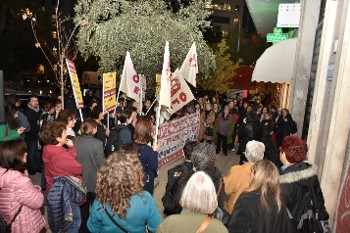 Νωρίτερα και κατά τη διάρκεια της συγκέντρωσης, παίρνοντας τον λόγο η Κωνσταντίνα Τσότρα, μέλος του ΔΣ της ΟΓΕ, μετέφερε την «αλληλεγγύη μας στις γυναίκες που βιώνουν τις τραγικές συνέπειες της βίας του πολέμου και της προσφυγιάς.