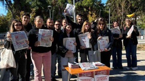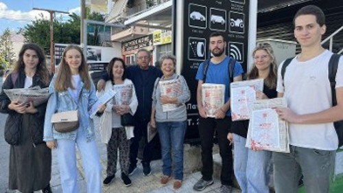 Ενώ με τα λίγα φύλλα που τους απέμειναν χτες Δευτέρα, βρέθηκαν σε χώρους δουλειάς και συνοικίες συνεχίζοντας την προσπάθεια εξάντλησής τους αλλά και της συζήτησης για το δυνάμωμα του Κόμματος και της γραμμής της σύγκρουσης και της ανατροπής του σάπιου εκμεταλλευτικού συστήματος.