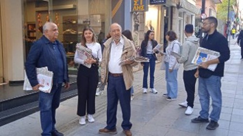 Στην εξόρμηση στο κέντρο της Χαλκίδας συμμετείχαν ο Γιώργος Μαρίνος και ο Κώστας Παρασκευάς, μέλη του ΠΓ της ΚΕ του ΚΚΕ.