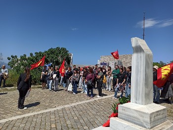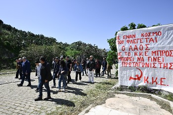 Στη σκιά του βράχου όπου βρισκόταν το στρατόπεδο συγκέντρωσης, το οποίο οι κομμουνιστές εξόριστοι μετέτρεψαν σε μεγάλο σχολείο κομμουνιστικής αρετής και αντοχής. Οργάνωσαν τη μόρφωσή τους, τη συλλογική τους ζωή, την αλληλεγγύη τους. Κράτησαν ψηλά τη σημαία του Κόμματος ακόμα και μπροστά στο εκτελεστικό απόσπασμα της Καισαριανής, όπου πολλοί από αυτούς οδηγήθηκαν την Πρωτομαγιά του '44, αποδεικνύοντας πως καμία βία δεν μπορεί να λυγίσει εκείνον που παλεύει συνειδητά, οργανωμένα, συλλογικά για τα δίκια και τη νίκη της εργατικής τάξης.