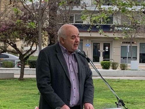 Ξεκινώντας την ομιλία του, αναφέρθηκε στην ανάγκη ο λαός να δώσει απάντηση σε κυβέρνηση και εργοδοσία με την επιτυχία της απεργίας στις 9 Απρίλη.