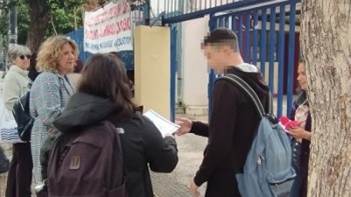 Εκεί μοίρασαν στους μαθητές και τις μαθήτριες μια αναμνηστική κάρτα με το γνωστό σκίτσο του Πικάσο που απεικονίζει τον Ν. Μπελογιάννη και ένα κόκκινο γαρίφαλο, καλώντας τους να γνωρίσουν την ηρωική και αλύγιστη δράση του στελέχους του ΚΚΕ, που το όνομά του έχει δοθεί στο σχολείο τους, και όσων αφιέρωσαν τη ζωή τους στην πάλη «για να δημιουργήσουμε νέους χρόνους και εποχές στο μπόι των ονείρων μας, στο μπόι των ανθρώπων», όπως έγραφε το πανό των Οργανώσεων.