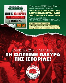«Ξέραμε ότι η ΠΑΣΠ έχει αλλεργία στους φοιτητικούς αγώνες. Τώρα μάθαμε ότι πάσχει και από αντικομμουνισμό τύπου Πλεύρη & Αδωνι Γεωργιάδη. Αλλωστε, μαζί τους έχει συγκυβερνήσει το ΠΑΣΟΚ.