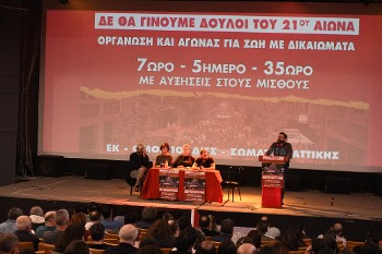Στον κινηματογράφο «Studio», όπου συγκεντρώθηκαν εκατοντάδες συνδικαλιστές από σωματεία του ιδιωτικού και δημόσιου τομέα, μεταφέρθηκε η πλούσια πείρα από την οργάνωση των αγώνων του προηγούμενου διαστήματος, αποτιμώντας την προετοιμασία τους, το πλαίσιο αιτημάτων, τη συμμετοχή των εργαζομένων. Και με παρακαταθήκη αυτά τα συμπεράσματα, τα συνδικάτα «βάζουν μπροστά» τη συνέχιση της μάχης για την οργάνωση των εργαζομένων σε κάθε χώρο δουλειάς και κλάδο.