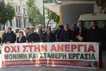 Την τραγική πραγματικότητα που υπάρχει «πίσω από τα ωραία και μεγάλα» λόγια της κυβέρνησης και του πρωθυπουργού αναδεικνύουν και τα Σωματεία και οι απολυμένοι των Ναυπηγείων Σκαραμαγκά και της ΛΑΡΚΟ, που μετά την κοινή παράσταση διαμαρτυρίας στο υπουργείο Εργασίας ανανεώνουν το αγωνιστικό τους ραντεβού για την πανελλαδική απεργία στις 9 Απρίλη.