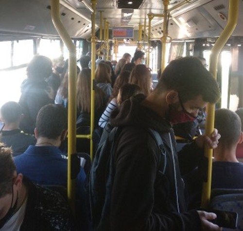 Στη φωτογραφία, την ίδια μέρα με τις ανεκδιήγητες δηλώσεις του υπουργού, φοιτητές στριμώχνονται σαν σαρδέλες στη γραμμή για τις σχολές στην Πανεπιστημιούπολη. Να σημειωθεί ότι σχολές ακυρώνουν εργαστήρια και μαθήματα γιατί, αντίθετα με όσα ζητούν οι φοιτητικοί σύλλογοι από την αρχή της χρονιάς, δεν έχει ληφθεί κανένα ουσιαστικό μέτρο προστασίας στα μαθήματα και αύξηση των δρομολογίων. Αντ' αυτού, η κυβέρνηση επιστρατεύει τις προκλήσεις με τις δηλώσεις περί του 5%...