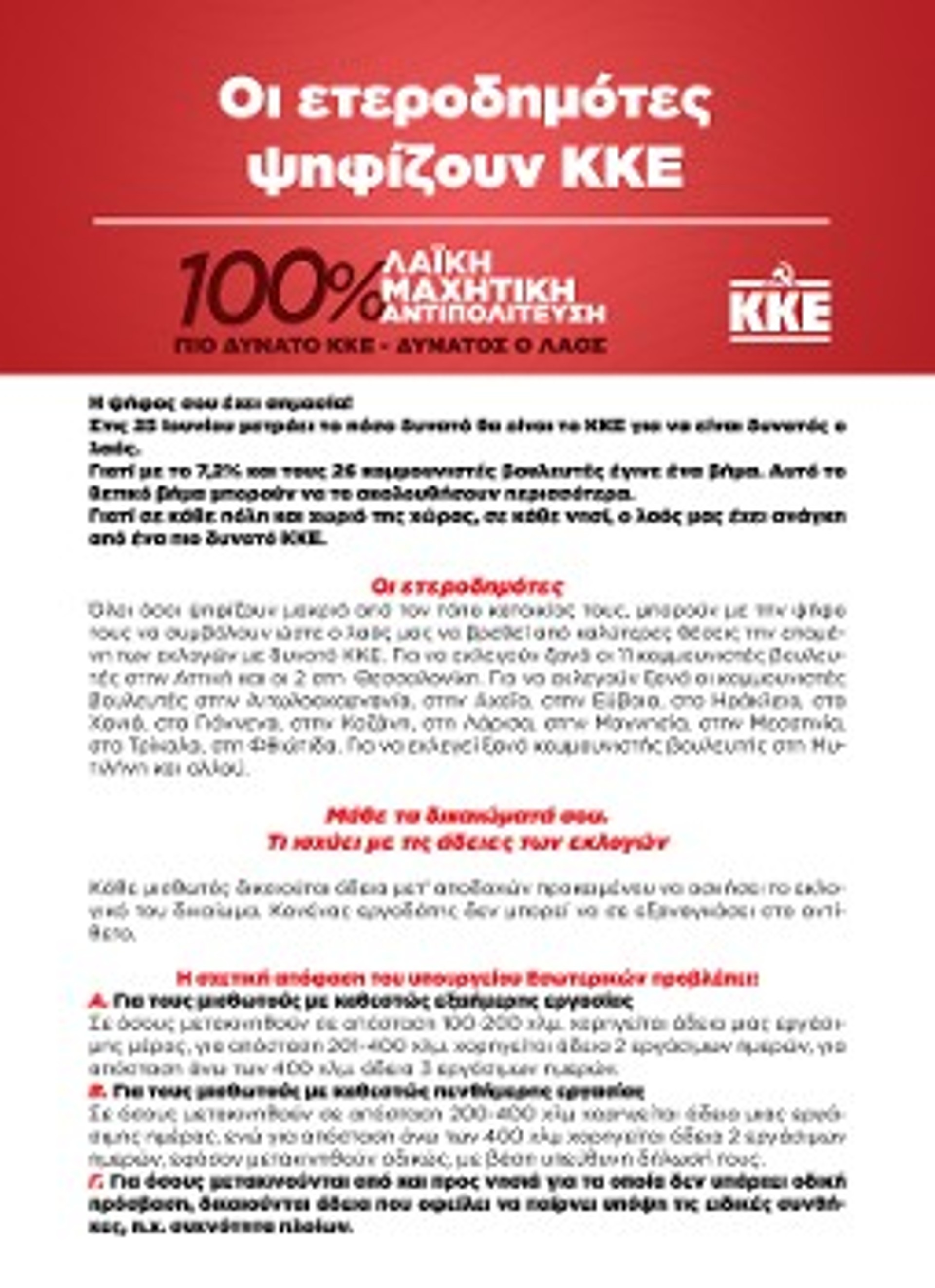 Εξασφάλισε με κάθε τρόπο τη μετακίνησή σου. Δυνάμωσε το μόνο κόμμα που την επομένη των εκλογών θα κάνει και τη δική σου φωνή πιο δυνατή. Ψήφισε το ΚΚΕ.