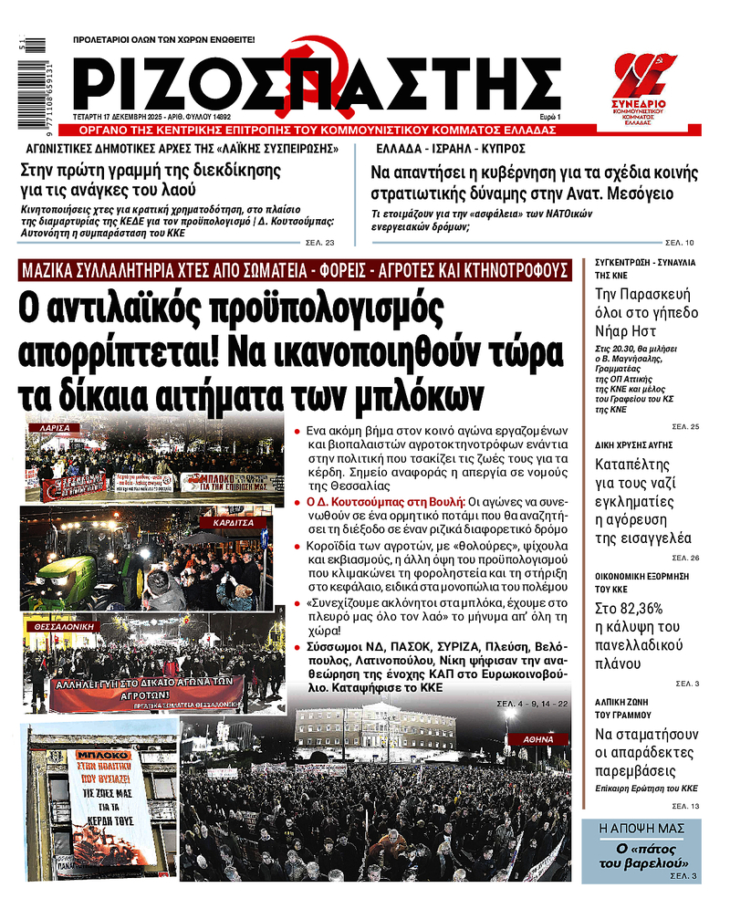 Η κυβέρνηση δεν μπορεί να χωνέψει ότι παρά τη λάσπη και τους ελιγμούς, εργαζόμενοι, αυτοαπασχολούμενοι και νεολαία εκφράζουν αμέριστη συμπαράσταση στον αγώνα των βιοπαλαιστών αγροτοκτηνοτρόφων, που είναι και δικός του αγώνας. Δεν είναι τυχαίο ότι σχεδόν 9 στους 10 συμφωνούν με τα δίκαια αιτήματά τους και 7 στους 10 με τον αγώνα στα μπλόκα.
