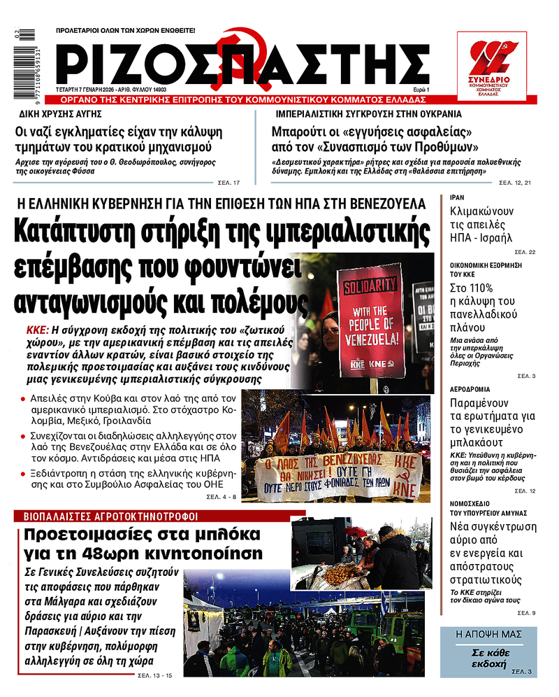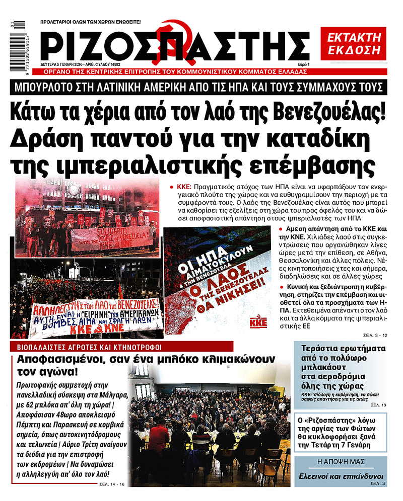 ΚΚΕ: Η σύγχρονη εκδοχή της πολιτικής του «ζωτικού χώρου», με την αμερικανική επέμβαση και τις απειλές εναντίον άλλων κρατών, είναι βασικό στοιχείο της πολεμικής προετοιμασίας και αυξάνει τους κινδύνους μιας γενικευμένης ιμπεριαλιστικής σύγκρουσης