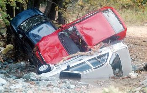 Σε πόρισμα του Γενικού Γραμματέα (ΓΓ) Περιφέρειας Θεσσαλίας, Γ. Καρατζιώτη, που συντάχθηκε μετά από σχετική εντολή της υπουργού Εσωτερικών, Β. Παπανδρέου, για τα αίτια των καταστροφών από τις πρόσφατες πλημμύρες στην περιοχή, καταλογίζεται στη Νομαρχία Λάρισας η μη κατεδάφιση αυθαιρέτων και η άρνηση του Νομάρχη να παραδώσει τα σχετικά στοιχεία, καθώς επίσης η ανεπιτυχής παρέμβαση στο ρέμα «Πλατανόρεμα - Πουρί Αγιόκαμπου», όπου έπεσε η γέφυρα που υπήρχε. Για το θέμα η υπουργός Εσωτερικών έδωσε χτες εντολή να συγκροτηθεί επιτροπή, αποτελούμενη από δύο ελεγκτές Δημόσιας Διοίκησης και δύο του ΥΠΕΧΩΔΕ, οι οποίοι θα μεταβούν στη Λάρισα, θα εξετάσουν το πρόβλημα και θα καταλογίσουν ευθύνες.