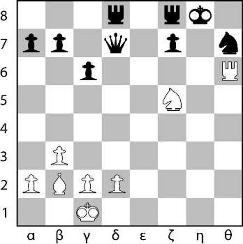 Λευκά: Ρε8, Βα5, Πβ3, Πδ3, Ιγ6, Ιε2, Αδ1, Αθ2 (8)