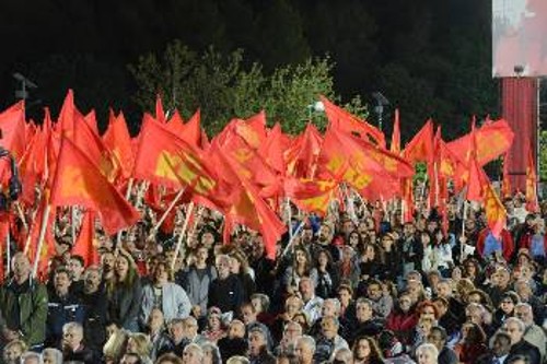 -- Για να παλέψουμε για τη νέα κοινωνία της πραγματικής ελευθερίας, μια κοινωνία χωρίς κρίσεις, πολέμους, εκμετάλλευση.