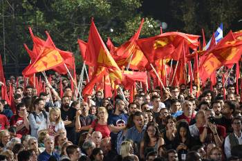 -- Σύμφωνοι, αλλά κοιτάξτε να δείτε, κι αυτό θέλει πολλή συζήτηση. Εμείς, ξέρετε, έχουμε εναντιωθεί σε όλα αυτά τα συλλαλητήρια που έχουν εθνικιστικό και αλυτρωτικό περιεχόμενο απ' τη σκοπιά τη δική μας, εδώ στην Ελλάδα. Γιατί όταν λες «η Μακεδονία είναι μία και ελληνική», παραβλέπεις ότι υπάρχει και γεωγραφικό μέρος της παλιάς Μακεδονίας που σήμερα ανήκει στην ΠΓΔΜ και στη Βουλγαρία. Αυτό είναι το μοίρασμα που έγινε. Αν αυτοί προτείνουν αλλαγές συνόρων, δηλαδή να διεκδικήσει για παράδειγμα η Ελλάδα, η ελληνική άρχουσα τάξη έδαφος απ' την παλιά Μακεδονία τη γεωγραφική, αυτό είναι απαράδεκτο. Μπαίνουμε σε άλλες λογικές, σε λογικές αλλαγής συνόρων. Δεν λέω ότι ο απλός κόσμος, αυτοί που ζουν στη Μακεδονία, στη Βόρεια Ελλάδα, σκέφτονται έτσι, όμως υπάρχουν δυνάμεις που δρουν, όπως είναι οι διάφορες αμερικανικές παροικίες, διάφοροι άλλοι που καθοδηγούν αυτήν την υπόθεση ή άλλοι για δικά τους συμφέροντα, για παράδειγμα τμήμα της ρωσικής ολιγαρχίας που παρεμβαίνει για τα ζητήματα αυτά. Υπάρχουν δηλαδή ζητήματα και οικονομικά συμφέροντα ισχυρών ιμπεριαλιστικών κρατών, κέντρων και μπλοκ δυνάμεων στην περιοχή που συγκρούονται και πάντα την πληρώνουν οι λαοί. Γιατί εδώ θα εκφραστεί αυτό που λέμε ενδοϊμπεριαλιστικός ανταγωνισμός, που εμφανίζεται και στη Μεσόγειο και στη Μέση Ανατολή, εμφανίζεται και στα Βαλκάνια τώρα περισσότερο με οικονομικούς όρους ή με όρους τέτοιους, «μπαίνω στο ΝΑΤΟ, δεν μπαίνω, έχω στρατιωτική βάση, δεν έχω, τίνος στρατιωτική βάση», με τέτοιους ανταγωνισμούς, αλλά δεν θα αργήσει η στιγμή να φτάσει και σε πολεμική εμπλοκή. Γιατί ΗΠΑ, Ρωσία, Γερμανία και άλλες χώρες - κράτη, η ΕΕ, η Κίνα, συγκρούονται ισχυρά και στα Βαλκάνια.