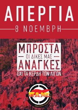 Τα βήματα μέσα από τα οποία οι ταξικές δυνάμεις θα δώσουν τη μάχη ώστε η επιτυχία της απεργίας στις 8 Νοέμβρη να γίνει υπόθεση των ίδιων των εργαζομένων, να σηματοδοτήσει την απόφασή τους να μπουν στον αγώνα με σύνθημα «Μπροστά οι δικές μας ανάγκες», συζητήθηκαν στην πλατιά σύσκεψη που οργάνωσε η Γραμματεία Θεσσαλονίκης του ΠΑΜΕ, την Τρίτη 16/10.