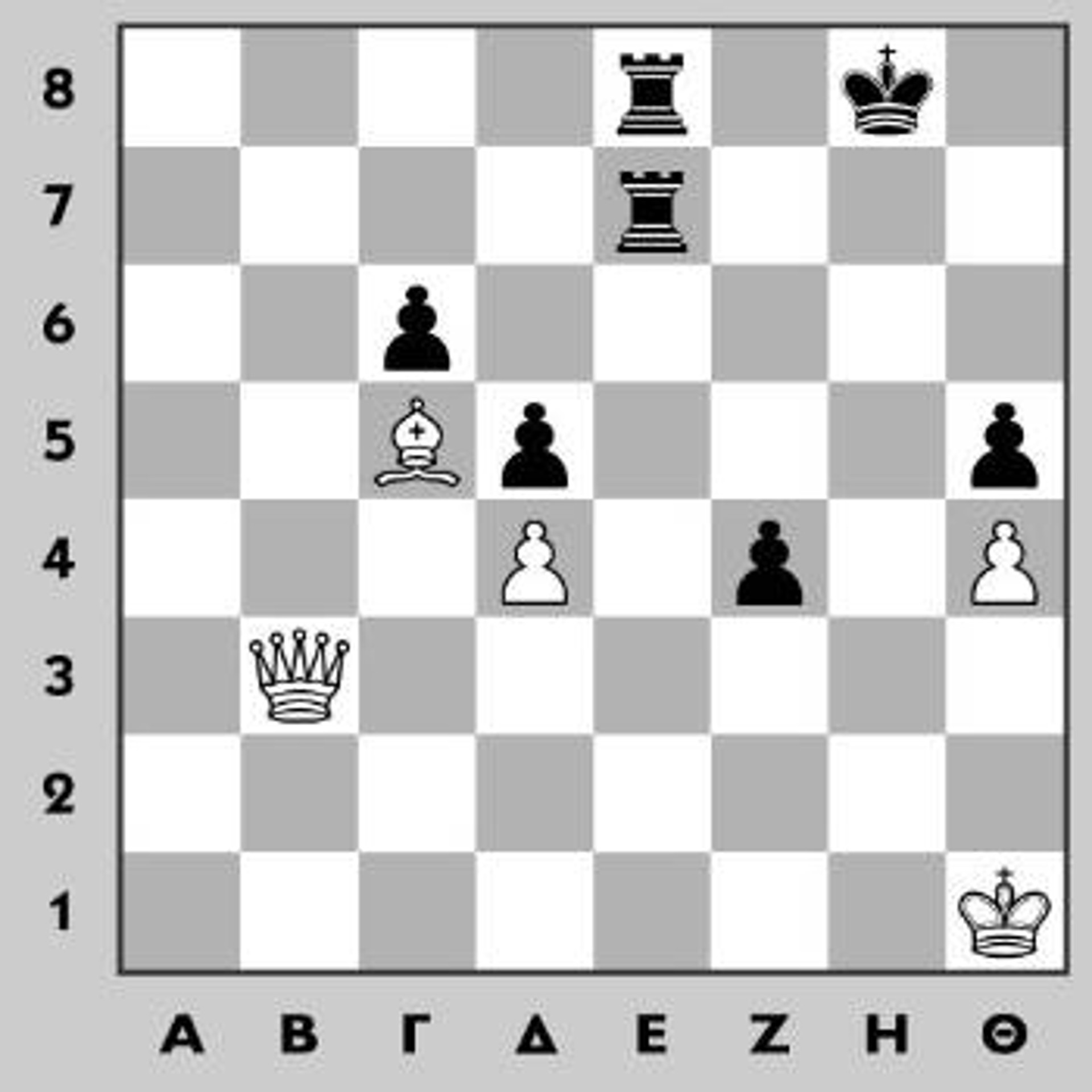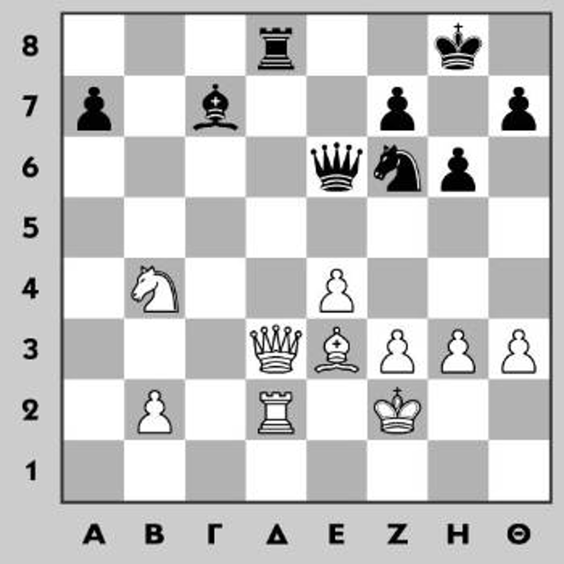 39.Βxδ8+! Ο Λευκός δίνει τη Βασίλισσα για Πύργο+Αξιωματικό γιατί, στη συνέχεια, όλα τα λευκά κομμάτια συνεργάζονται με υποδειγματικό τρόπο, προκειμένου να επιτεθούν κατά του αντίπαλου Βασιλιά. 39...Αxδ8 40.Πxδ8+ Ρη7 41.Αδ4 Απειλώντας 42.Ιδ5 41...Ρθ6?! Τα λευκά πιθανότατα κερδίζουν και μετά από 41...Βxθ3 42.Πδ6 Βθ2+ 43.Ρε3 Βη1+ 44.Ρδ2 Βη2+ 45.Ργ3 Βxζ3+ 46.Ιδ3 Βxη3 47.Πxζ6 Ρη8 48.Πγ6, αν και σε αυτήν τη συνέχεια μάλλον θα αντιμετώπιζαν περισσότερες πρακτικές δυσκολίες 42.η4 και τα λευκά πιόνια συμμετέχουν στην επίθεση! 42...Ιδ7 43.Ιδ5 ζ5 44.Πθ8 ζxε4 ή 44...ζxη4 45.θxη4 η5 46.Πα8 και ο μαύρος Βασιλιάς είναι πολύ εκτεθειμένος για να γλυτώσει 45.ζ4! Απειλώντας η5+ και Πxθ7 ματ 45...Ιζ8 46.η5+ Ρθ5 47.Ιζ6+ Ρθ4 48.Ιxθ7 ε3+ 49.Αxε3 1-0