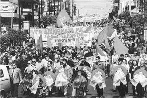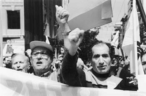 Ακολούθως, αφού υπογράμμισε: «Στον αγώνα η προοπτική, στο διάλογο η υποταγή», πρόσθεσε: «Για ποιο διάλογο από μηδενική βάση και χωρίς προαπαιτούμενα μπορούν να μιλούν όταν εφαρμόζεται η αντιλαϊκή πολιτική, όταν η ανεργία καλπάζει, όταν προωθούνται οι αντιδραστικές ανατροπές στις εργασιακές σχέσεις, όταν πάνω από τα κεφάλια των εργαζόμενων στέκεται η δαμόκλειος σπάθη της Συνθήκης του Μάαστριχτ, της "Λευκής Βίβλου" όσο οι καπιταλιστές εκμεταλλεύονται τους εργάτες; Η εργατική τάξη έχει προαπαιτούμενα, πολλά και αδιαπραγμάτευτα προαπαιτούμενα. Την ανατροπή της κυβερνητικής πολιτικής για την Κοινωνική Ασφάλιση. Την ανατροπή συνολικά της αντεργατικής πολιτικής. Δεν παλεύουμε μόνο για να υπερασπίσουμε τις κατακτήσεις μας. Δεν παλεύουμε μόνο για να διευρύνουμε τις κατακτήσεις μας. Παλεύουμε για την κατάργηση της εκμετάλλευσης ανθρώπου από άνθρωπο, για την κατάκτηση της εξουσίας, για την οικοδόμηση μιας άλλης κοινωνίας».