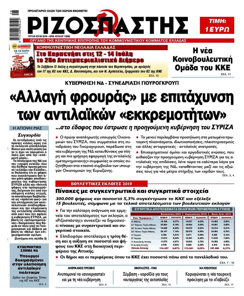 Σε αυτούς τους αγώνες μπροστάρης θα είναι το ΚΚΕ, καταθέτοντας όλες του τις δυνάμεις, μέσα κι έξω από τη Βουλή, στην υπόθεση αυτή, αποτελώντας - όπως και πριν - τη μόνη αντιπολίτευση από τη σκοπιά των λαϊκών συμφερόντων απέναντι στο κεφάλαιο, στην κυβέρνηση ΝΔ και στα άλλα κόμματά του.