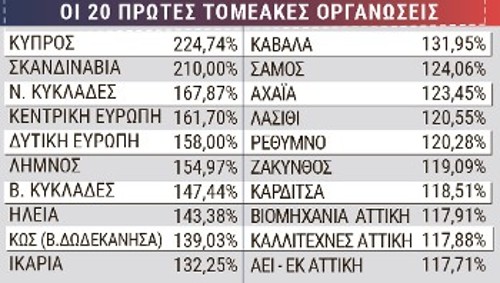 Σταθερά στην πρώτη θέση βρίσκεται η ΚΟ Εξωτερικού με 172,57% και στη δεύτερη η ΚΟ Αιγαίου με 128,24%. Η πρώτη τριάδα συμπληρώνεται από την ΚΟ Κρήτης με 117,62%, η οποία προσπέρασε την ΚΟ Δυτικής Ελλάδας που ακολουθεί σε απόσταση αναπνοής με 117,19%.