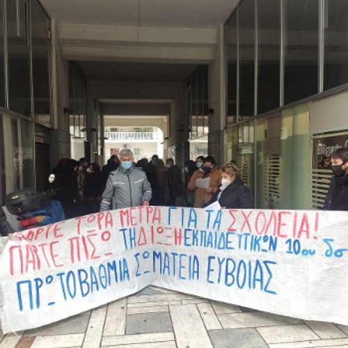 Επίσης, απαίτησαν να ανακληθεί εδώ και τώρα η δίωξη ενάντια σε εκπαιδευτικούς του 10ου Δημοτικού Σχολείου Χαλκίδας, που εξελίσσεται με ευθύνη της Διεύθυνσης Πρωτοβάθμιας Εκπαίδευσης, η οποία αντί να καλύψει άμεσα το κενό σε εκπαιδευτικό της ΣΤ' Δημοτικού επιχειρεί να κουκουλώσει τις ελλείψεις και να φορτώσει την ευθύνη στους εκπαιδευτικούς.
