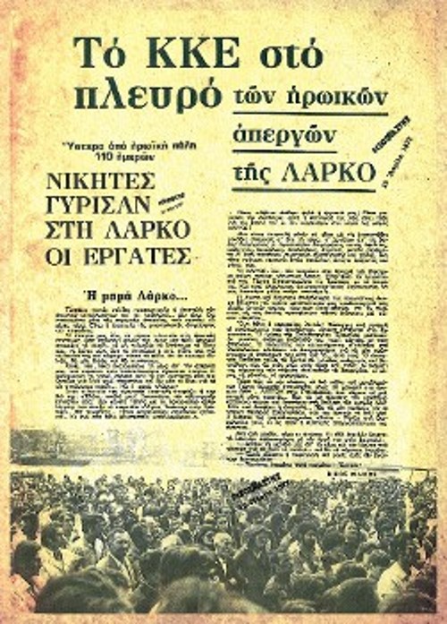 Μπροστά στα εκβιαστικά διλήμματα ζωής ή θανάτου βρέθηκαν 900 εργάτες της ΛΑΡΚΟ από την κυβέρνηση Καραμανλή, με τη χρήση απεργοσπαστικού μηχανισμού και παράνομες απολύσεις. Ετσι, ξεκίνησαν κοινή και αλληλέγγυα πάλη, σαν μία γροθιά, πριν από ακριβώς σαράντα πέντε χρόνια. Κήρυξαν απεργία που κράτησε εκατόν δέκα μέρες: Συγκεκριμένα, από τις 27 Γενάρη του 1977, η οποία ολοκληρώθηκε νικηφόρα στις 12 Μάη της ίδιας χρονιάς. Τα κύρια αιτήματά τους ήταν η αύξηση των μισθών κατά 20% και η βελτίωση των συνθηκών εργασίας.