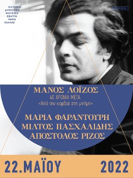 Συνεχίζεται στο θέατρο «Ολύμπια» ο αφιερωματικός κύκλος συναυλιών για τον Μάνο Λοΐζο. Με αφορμή τη συμπλήρωση 40 χρόνων από τον θάνατό του, παρουσιάζει σχεδόν το σύνολο του έργου του με τη συμμετοχή των πρώτων ερμηνευτών που βρίσκονται ακόμα σε δημιουργική πορεία, αλλά και νεότερων σημαντικών ερμηνευτών που έχουν συμπορευτεί μέσα στα χρόνια με τα τραγούδια του.