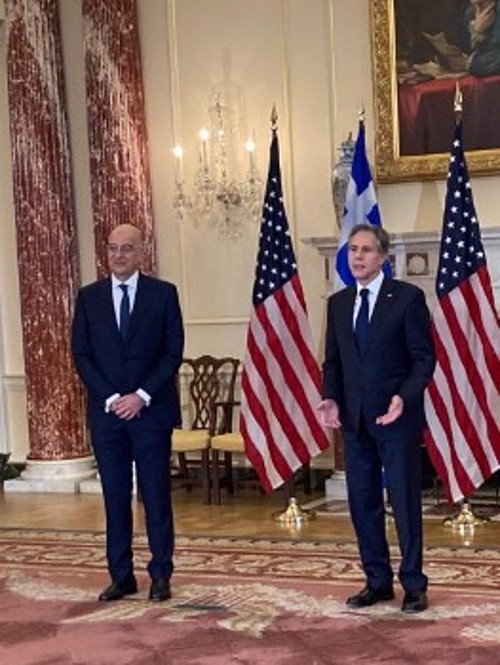 Συγκεκριμένα, στην Ουάσιγκτον και παράλληλα με την παρουσία Μητσοτάκη σε Λευκό Οίκο και Κογκρέσο, ο υπουργός Εξωτερικών Ν. Δένδιας «έτρεξε» το δικό του πρόγραμμα, αποκορύφωμα του οποίου ήταν η συνάντησή του με τον Αμερικανό ομόλογό του Α. Μπλίνκεν, ο οποίος μίλησε άλλωστε για «δύο σημαντικές και απίστευτα παραγωγικές μέρες», προσθέτοντας ότι «εναπόκειται σε εμάς πλέον - σε μένα και τον Νίκο - να εφαρμόσουμε όλες τις οδηγίες που λαμβάνουμε από τον Πρόεδρο Μπάιντεν και τον πρωθυπουργό Μητσοτάκη για να συνεχίσουμε να κάνουμε το έργο που έφερε τη συνεργασία ΗΠΑ - Ελλάδας σε υψηλότερο σημείο από ποτέ».
