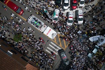 Οταν ολοκληρώθηκε η διαδικασία, το φέρετρό του τοποθετήθηκε στην κορυφή ενός πυροσβεστικού οχήματος, όπως είχε συμβεί και με τον θάνατο ενός άλλου θρύλου της χώρας, του πιλότου της Formula 1 Αϊρτον Σένα. Το όχημα πέρασε από διάφορους δρόμους της πόλης και η μετακίνησή του γινόταν σε πολύ χαμηλή ταχύτητα, λόγω των δεκάδων χιλιάδων ανθρώπων που το συνόδευαν πεζή. Κατά την πορεία του έκανε στάση έξω από το σπίτι της μητέρας του Πελέ, της 100χρονης Σελέστ, η οποία πάσχει από άνοια και δεν γνωρίζει για τον θάνατο του γιου της.