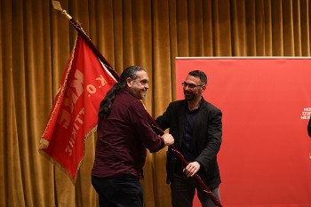 Πρώτη η Τομεακή Οργάνωση Τοπικής - Περιφερειακής και Κεντρικής Διοίκησης, που έλαβε τη σημαία του Κόμματος, αναμνηστική πλακέτα και ηλεκτρονικό εξοπλισμό.
