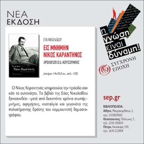 Στη μνήμη του ΣΤΕΛΙΟΥ ΛΑΜΠΑΡΔΑΚΗ, μέλους του Κόμματος, κατοίκου Πειραιά και στη μνήμη του ΛΑΖΑΡΟΥ ΚΩΝΣΤΑΝΤΙΝΙΔΗ, μέλους του Κόμματος επίσης και κατοίκου Κερατσινίου (συγκεκριμένα της Αμφιάλης), προσφέρω στο ΚΚΕ το συμβολικό ποσό των 30 ευρώ μέσω της ΚΟΒ Ταμπουρίων.