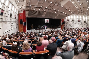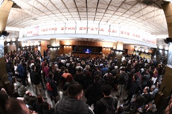 Στην κατάμεστη αίθουσα συνεδρίων της ΚΕ του ΚΚΕ στον Περισσό και στο φουαγιέ της, άνθρωποι όλων των ηλικιών, εργάτες του πνεύματος και του χεριού, νεολαία, αλλά και μεγαλύτεροι σε ηλικία σύντροφοι έδωσαν το «παρών» στη μεγάλη εκδήλωση που διοργάνωσε η ΚΕ του Κόμματος τιμώντας τα 100 χρόνια από τον θάνατο του Λένιν, του μεγαλύτερου επαναστάτη που έζησε στον 20ό αιώνα.