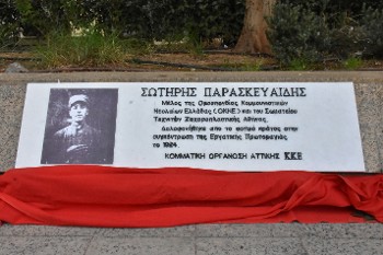 Αποκαλυπτήρια τιμητικής πλακέτας από την ΚΟ Αττικής του ΚΚΕ για τον πρώτο δολοφονημένο εργάτη σε απεργιακή πρωτομαγιάτικη συγκέντρωση στην Ελλάδα τον 20όαιώνα