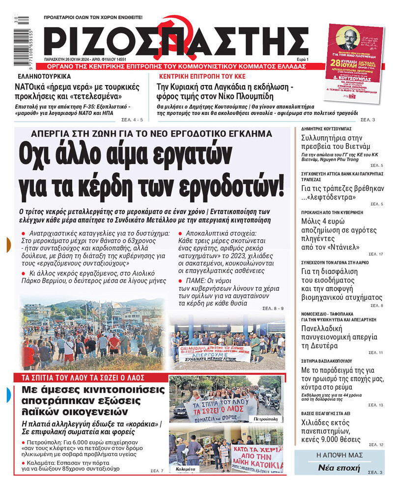 Το πραγματικά νέο, η κοινωνία της ειρήνης, της λαϊκής ευημερίας, των αμοιβαία επωφελών σχέσεων με όλους τους γείτονες λαούς, για την οποία παλεύει το ΚΚΕ, μπορεί να έρθει μόνο από τη δική του πάλη σε σύγκρουση με αυτή την πολιτική, στον καθημερινό αγώνα για απεμπλοκή της Ελλάδας από τους ιμπεριαλιστικούς σχεδιασμούς και πολέμους, για να κλείσουν όλες οι ευρωατλαντικές βάσεις και στρατηγεία στην Ελλάδα, να σταματήσει η συμμετοχή σε όλες τις στρατιωτικές αποστολές από τις επιχειρήσεις του ΝΑΤΟ και της ΕΕ στο εξωτερικό. Στην πάλη για να μην υπάρξει καμιά αλλαγή των συνόρων και των Συνθηκών που τα καθορίζουν, για αποδέσμευση από το ΝΑΤΟ και την ΕΕ με τον λαό κυρίαρχο στον τόπο του.