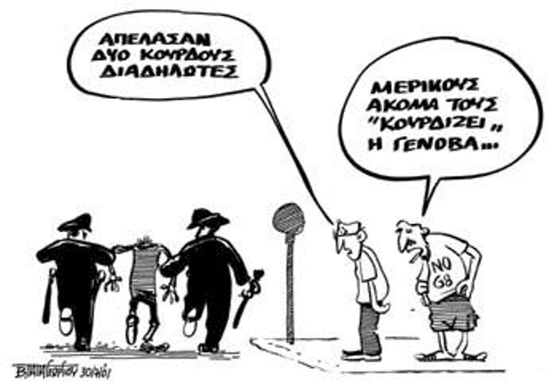 Και πέρα από τα παραπάνω, ακριβώς, αυτές οι προθέσεις της κυβέρνησης είναι η μεγαλύτερη και πλέον ατράνταχτη απόδειξη ότι λέει «ναι» στο πνεύμα της κρατικής καταστολής που κυριάρχησε στη Γένοβα. Οτι συμφωνεί πολιτικά - τουλάχιστον - με όσα συνέβησαν εκεί.