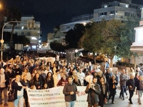 Ενα συλλαλητήριο που παίρνει τη σκυτάλη από τις ογκώδεις κινητοποιήσεις που συγκλόνισαν τις μεγάλες πόλεις της Κρήτης τα τελευταία δύο χρόνια, αποτελώντας ακόμα έναν δυνατό κρίκο στην κλιμάκωση του αγώνα του κρητικού λαού.