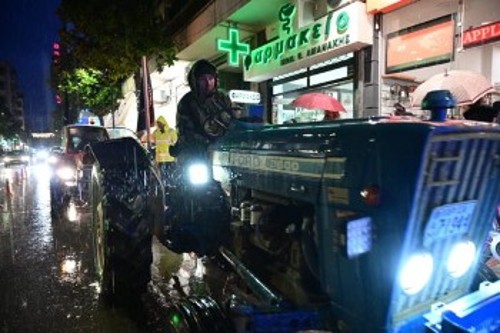 Με έντονη βροχόπτωση, μάλιστα, ξεκίνησαν από τα χωριά τους με τρακτέρ και αγροτικά μηχανήματα και έφτασαν έξω από το γραφείο του υφυπουργού, όπου τους περίμεναν ισχυρές αστυνομικές δυνάμεις. Οι παραγωγοί πέταξαν στην είσοδο του γραφείου του υφυπουργού αμύγδαλα που σαπίζουν στις αποθήκες τους, απαιτώντας από την κυβέρνηση την άμεση καταβολή των αποζημιώσεων για τις ζημιές που υπέστη η παραγωγή τους από τον παγετό την περίοδο 2022 - 2023.