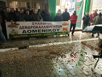 Ο Ρίζος Μαρούδας, πρόεδρος της Ενωτικής Ομοσπονδίας Αγροτικών Συλλόγων ν. Λάρισας, κατήγγειλε την παρουσία ισχυρής αστυνομικής δύναμης και πρόσθεσε: «Η αμυγδαλοκαλλιέργεια δεν έχει αποζημιωθεί καθόλου εδώ και πολλά χρόνια, ούτε για τις καταστροφές των προηγούμενων χρόνων ούτε για το γεγονός ότι η τιμή του αμύγδαλου πέφτει ενώ το κόστος παραγωγής αυξάνεται».