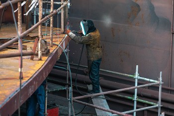 Μέσα, έξω και κάτω από αυτά συνεργεία, ομάδες μεταλλεργατών και ναυπηγοξυλουργών, σαν μυρμήγκια που τα έχουν βάλει με θηρία. Ομως τα θηρία φτιάχνονται από εργάτες. Χωρίς αυτούς θα σκούριαζαν, θα έμεναν άδεια κουφάρια. Είναι προϊόντα της εργασίας εκατοντάδων εργατών, εκδήλωση της τεράστιας δύναμης που κρύβει η συλλογική δουλειά τους, αλλά και της δράσης τους, που μπορεί να γίνει η δύναμη που θα αλλάξει τον κόσμο, παίρνοντας αυτό που της ανήκει, τον τεράστιο πλούτο που παράγουν κάθε μέρα, κάθε ώρα.