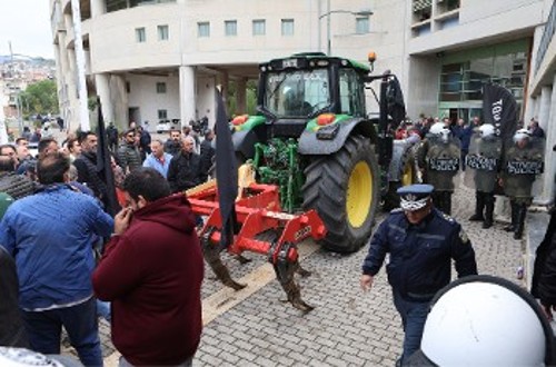 Επιδιώκοντας να «φιμώσει» τη φωνή τους η κυβέρνηση και να βάλει στο περιθώριο τις δίκαιες διεκδικήσεις τους, παρέταξε ισχυρές δυνάμεις καταστολής απέναντί τους. Ωστόσο, οι συγκεντρωμένοι αγρότες, μαχητικά και με αποφασιστικότητα, έσπασαν τρεις φορές το μπλόκο των αστυνομικών, που θέλησαν να τους κρατήσουν εκατοντάδες μέτρα μακριά από το κτίριο του Διοικητηρίου. Παρά την καταστολή και τα χημικά, κατάφεραν να βρεθούν, ακόμη και με τρακτέρ, μέσα στο προαύλιο του Διοικητηρίου και μπροστά στην είσοδο της αίθουσας, όπου το κυβερνητικό κλιμάκιο και οι διοικήσεις της Περιφέρειας Στερεάς Ελλάδας και των δήμων της Βοιωτίας διαβουλεύονταν για το πώς θα προωθήσουν καλύτερα την αντιλαϊκή τους πολιτική.