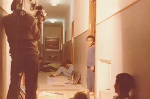 Προσπάθησα να συναντήσω έναν Παλαιστίνιο για να μου πει δυο λόγια, γι' αυτό κατευθυνθήκαμε στο Πανεπιστήμιο της Βηρυτού, κάτω στο υπόγειο, όπου ήταν κρυμμένοι αρκετοί επιζήσαντες, καθισμένοι στο έδαφος, τρώγοντας καρπούζι και κουβεντιάζοντας με τον Αμπού Αλίντ, έναν από τους ηγέτες του στρατού τους.