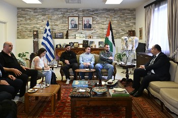 «Ξέρετε ότι στην ΚΝΕ έχετε έναν σταθερό φίλο για τα δίκαια του Παλαιστινιακού λαού, που συνεχίζουμε να παλεύουμε γι' αυτόν, γιατί ξέρουμε ότι τίποτα δεν τελείωσε και τα δύσκολα είναι μπροστά μας», τόνισε από την πλευρά του ο Θ. Κωτσαντής.