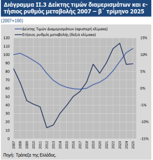 Αποτυπώνοντας εξάλλου όλο το «φάσμα» της πολιτικής που κάνει το κόστος στέγης απλησίαστο, η έκθεση αναφέρει πως «η αύξηση των τιμών των κατοικιών και των ενοικίων τους, σε συνδυασμό με τη φορολογική επιβάρυνση των ακινήτων και το αυξημένο λειτουργικό κόστος τους, συνέβαλαν τα τελευταία έτη στην όξυνση του προβλήματος στέγασης και στην Ελλάδα, η οποία αντικατοπτρίζεται στον λόγο του κόστους στέγασης προς το διαθέσιμο εισόδημα (2024: 35,5%)».
