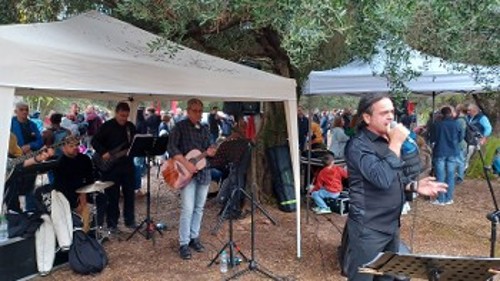 Η συνέχεια δόθηκε με το «Επέσατε θύματα» - από τη Μαρία Γκόρου - και τη «Διεθνή», ενώ τη σκυτάλη πήρε το μουσικό πρόγραμμα, το οποίο παρουσίασε ο Βασίλης Γισδάκης με τους Παναγιώτη Κελάνδρια (κιθάρα), Γιάννη Κουτάγιαρ (κοντραμπάσο), Απόστολο Βαλσαμά (μπουζούκι) και Νίκο Μεταλληνό (κρουστά), περιλαμβάνοντας τραγούδια των Μίκη Θεοδωράκη, Μάνου Χατζιδάκι, Θάνου Μικρούτσικου, Νότη Μαυρουδή και άλλων δημιουργών.